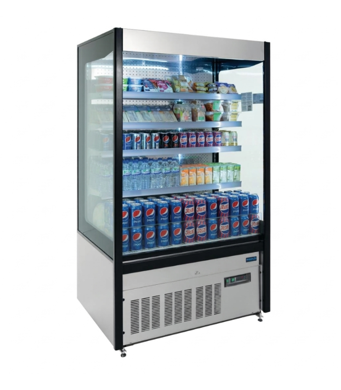 ثلاجة عرض مفتوحة (Multideck) – ستانلس ستيل – عرض 1 متر – عرض مثالي لمنتجات الـ Grab & Go