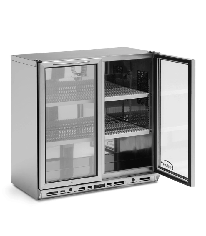 تُعد ثلاجة ثلاجة بار باب مزدوج الحل المثالي للبارات، والمقاهي، والمطاعم ذات الكثافة العالية التي تتطلب مساحة تخزين وعرض واسعة.