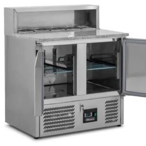 مبرّد عرض مُبرَّد بسعة 100 لتر، مصمم بباب زجاجي منحني. يتميز بتبريد هوائي قسري (Fan forced airflow) وإذابة تلقائية للثلج (Auto defrost)، مما يجعله مثاليًا لعرض الكعك، الحلويات، المشروبات، أو الأطعمة المبردة على سطح المنضدة (Countertop).