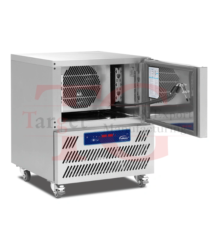 سرعة تبريد استثنائية: يقلل حرارة الطعام من 90 درجة مئوية إلى 3 درجات مئوية في 90 دقيقة، مما يضمن تجاوز “منطقة الخطر” لنمو البكتيريا بسرعة فائقة.