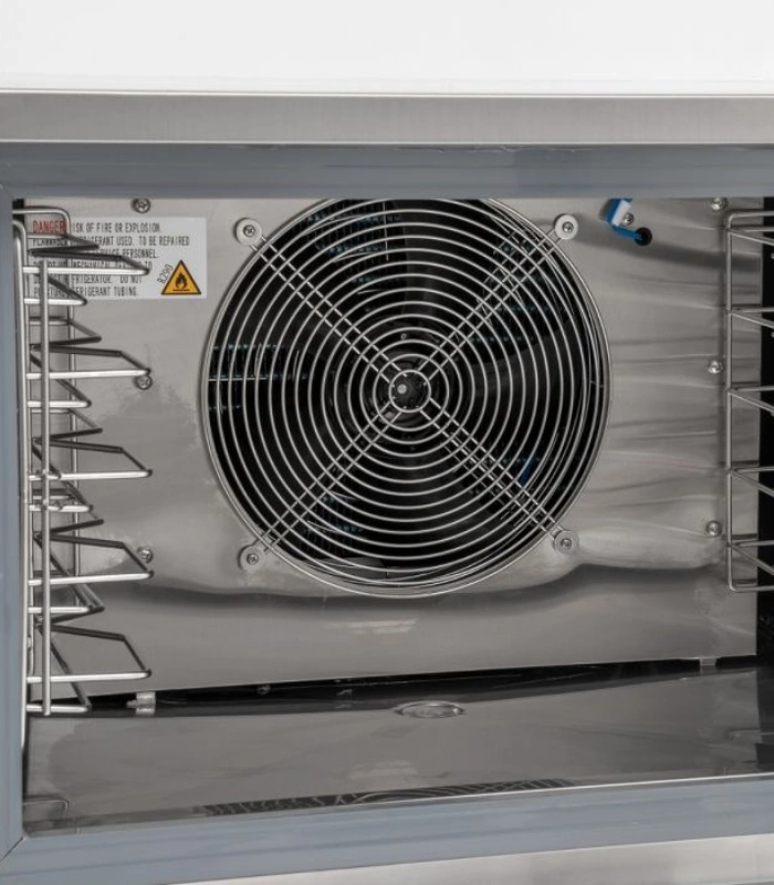 التجميد الصدمي (Blast Freezing): يجمد من +70°C إلى -18°C في 240 دقيقة، بسعة تصل إلى 12 كجم.