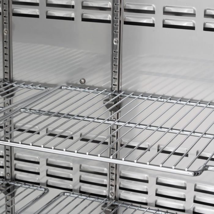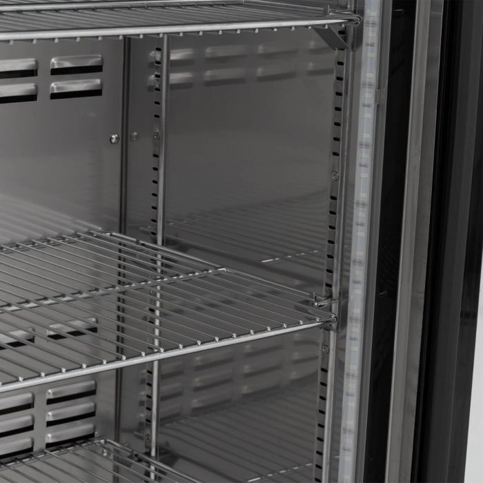 - باب زجاجي مفصلي واحد :يتيح الباب الزجاجي رؤية واضحة للمنتجات بالداخل، مما يسهل على الموظفين تحديد