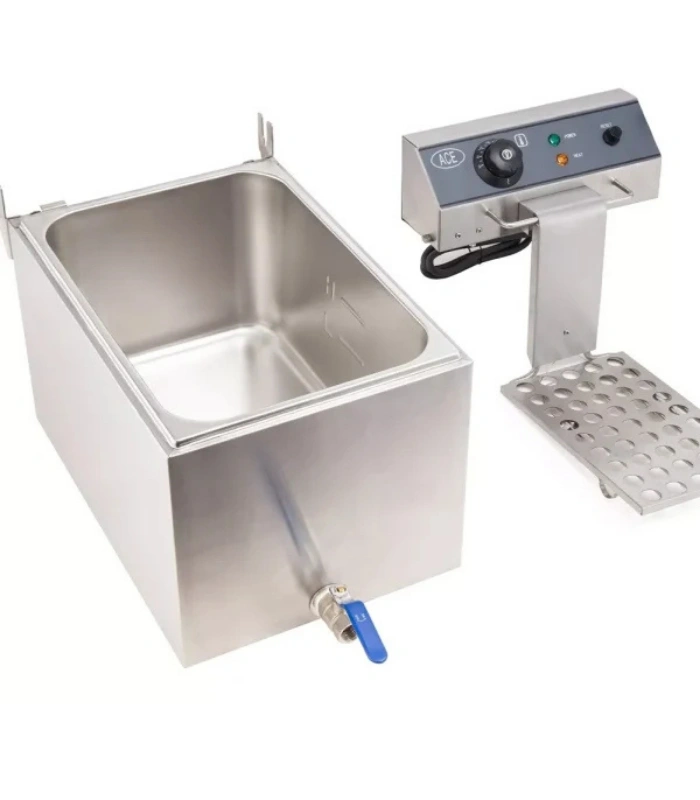 The standout feature of this model is the integrated oil drain valve, which ensures quick, safe, and clean oil filtration and replacement. Trusted by professionals, the ACE fryer is a cornerstone of commercial kitchen equipment, blending industrial-grade durability with a user-friendly design.