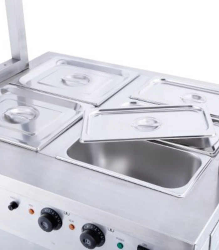- Wet Heat Operation (Bain Marie): Utilizes a water bath (Bain Marie) heating system, which provides gentle, even heat distribution to prevent food from drying out or burning, maintaining its texture and flavor.