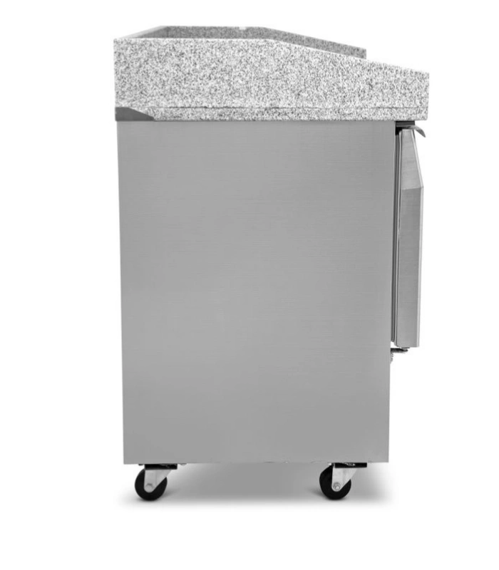 - Triple-Door Design: The three doors provide a large refrigerated storage area below the worktop, allowing you to keep additional ingredients or prepped products ready for use.